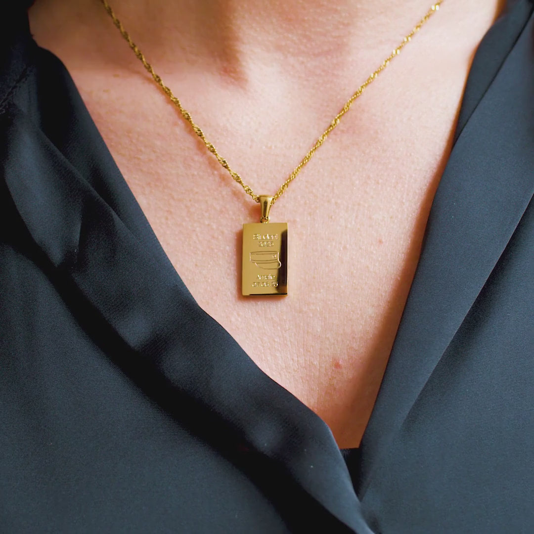 Materialer: Rustfritt stål belagt med 18 karat gull + PVD-belegg. Smykket er vannfast og allergivennlig, blyfritt og nikkelfritt i henhold til dansk lovgivning.